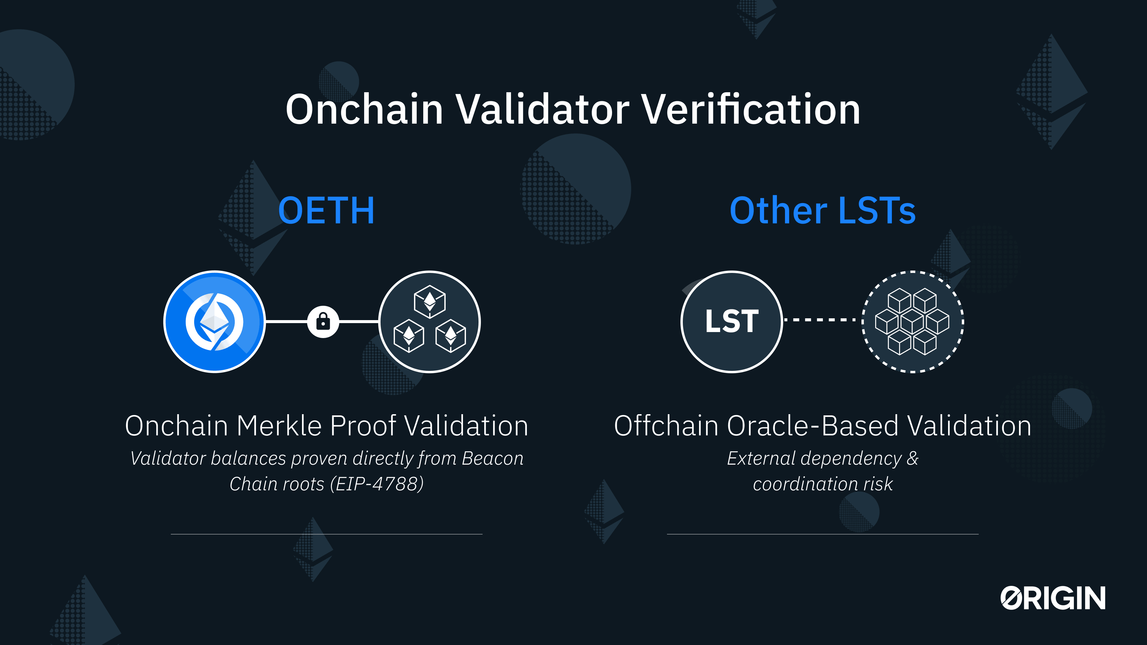 This places OETH in an elite category: only EigenLayer, StakeFish, and now Origin Ether use native merkle proof validation. By adopting this, OETH’s accounting is fully trust-minimized and cryptographically verifiable, aligning directly with Ethereum’s base security model.
